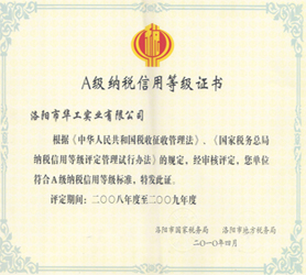 A級(jí)納稅信用等級(jí)證書(shū)